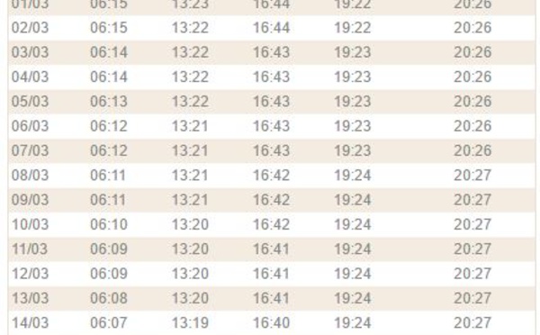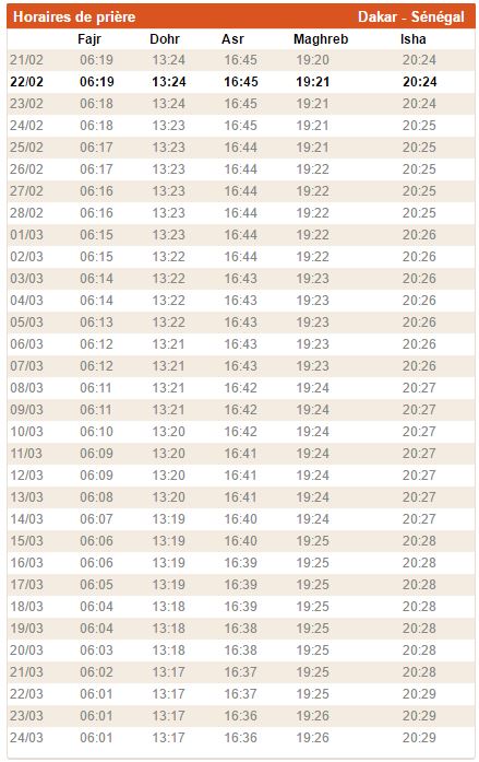 Horaires De Priere Dakar Senegal